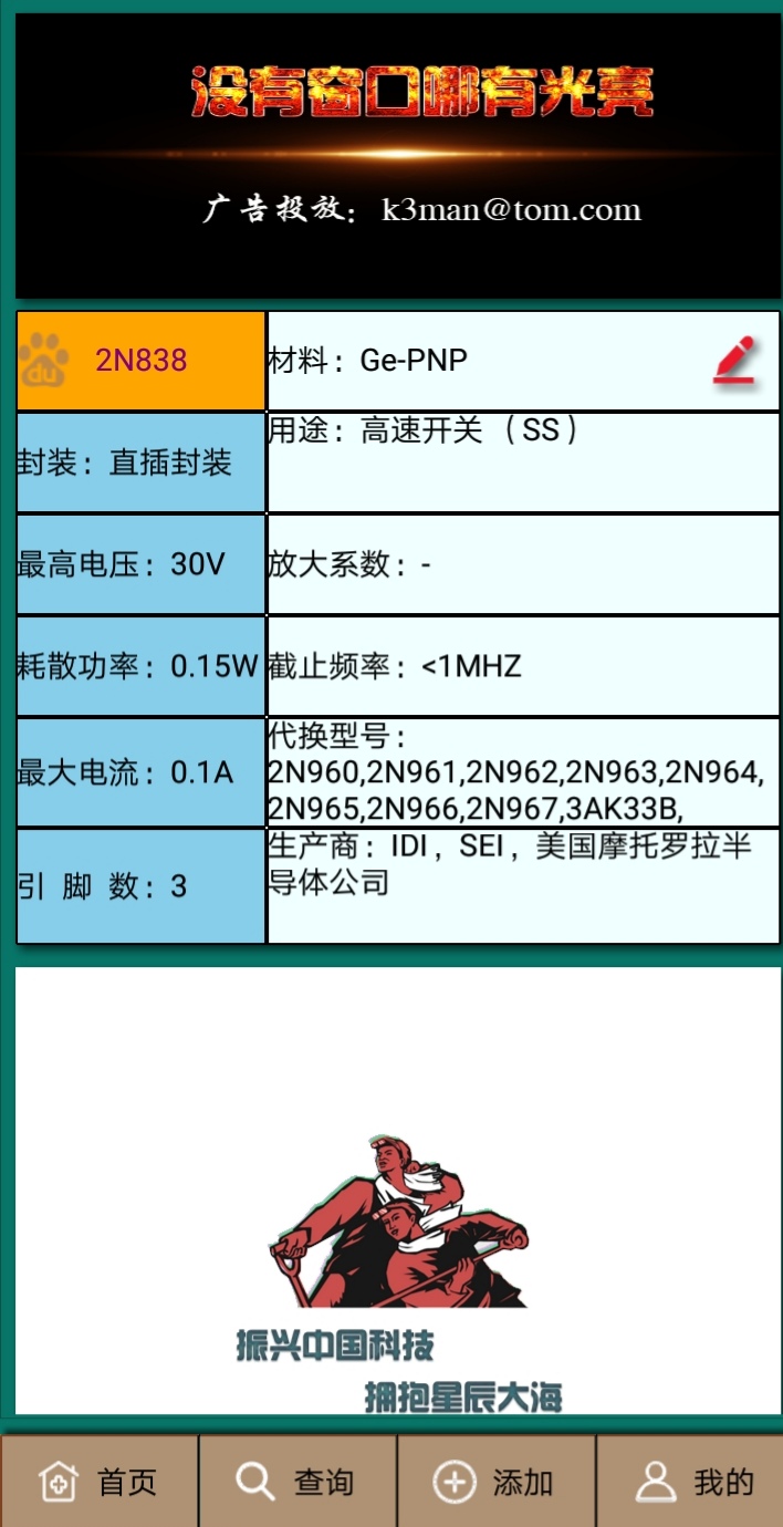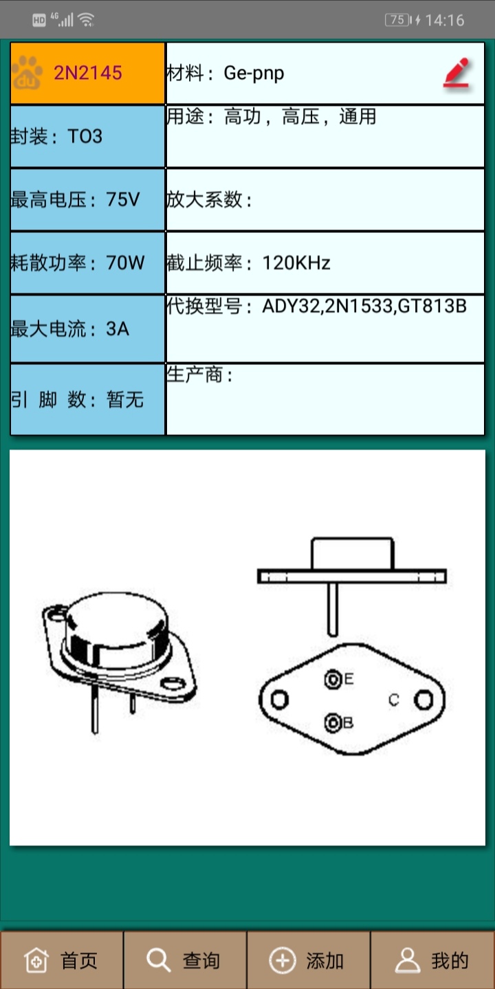 3、新增1300种晶体管数据,并包含更详细的封装图例说明。通过“我的”→“数据更新”获得。