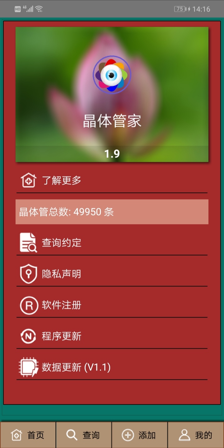 4、晶体管数据升级至V1.6,通过“我的”→“数据更新”获得。
