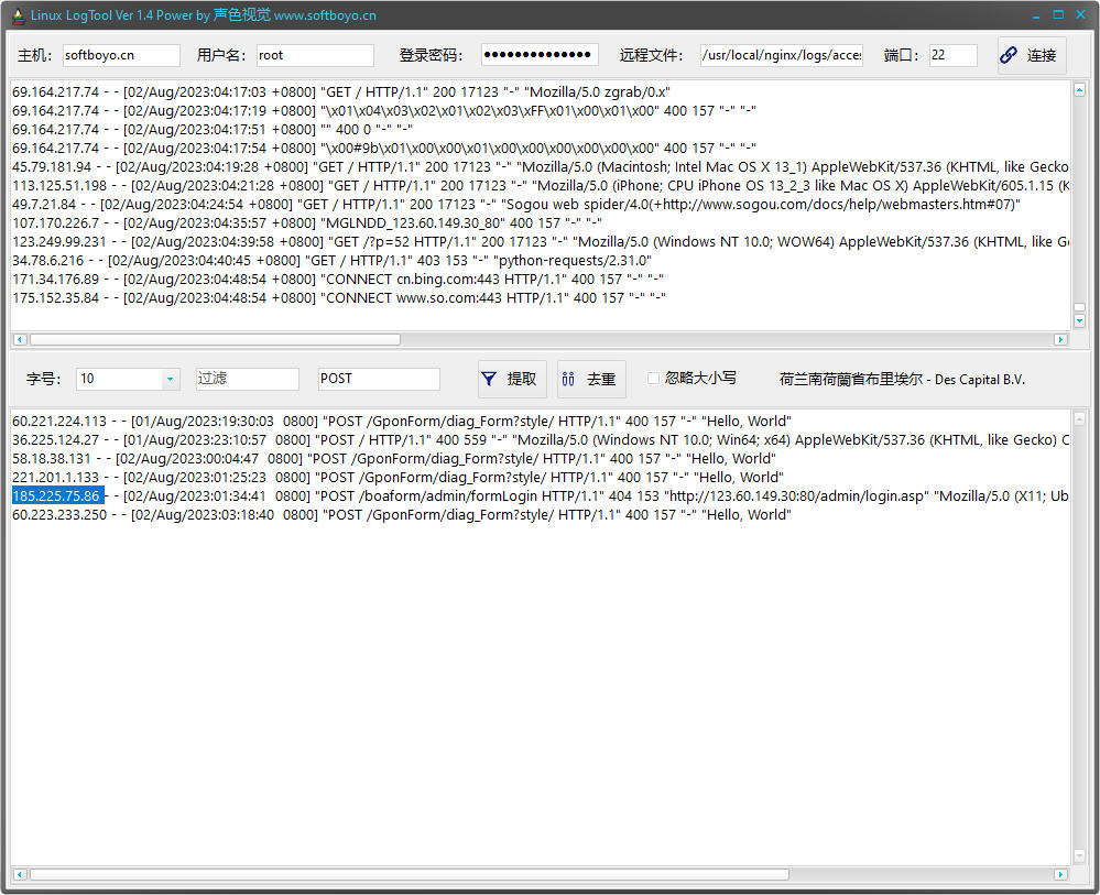 作为 Linux 系统运维管理员,会跟大量的日志文件打交道,Apache、Nginx、MarlaDB、MySQL等等。传统日志文件查询,需要一条条打入指令集繁琐且低效。而 LogTool 将根据用户需求自动提取日志中的关键行,避开长篇大论的日志文件,让服务器日志分析与管理变得轻松。