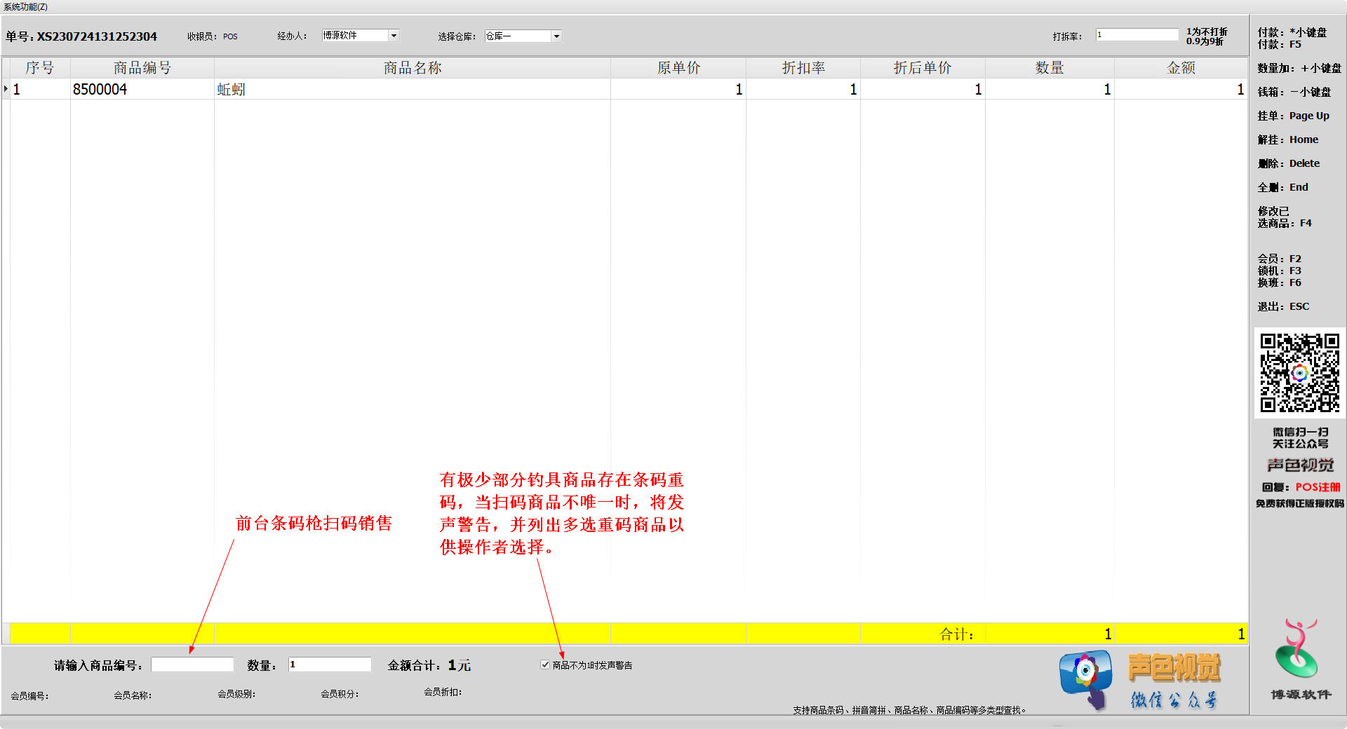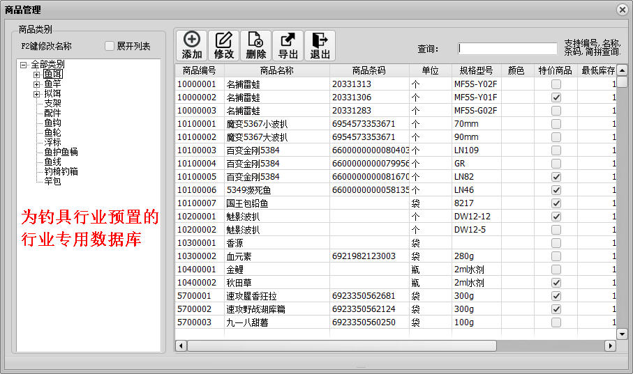 本次更新除增加了商户与厂家间信息沟通外,还增加了“钓场分享”该功能能拉近商户与钓友间的距离, 增加了商户与钓友间的粘合度,解决了钓友们无鱼可钓的尴尬。同时软件还集成国内知名钓具生产企 业,为渔具商家提供方便快捷的钓具了解窗口。如果电脑中有早期版本,在下载安装时,会自动保 留商家的销售数据。支持前端使用条码枪扫码销售,实现销售自动化。